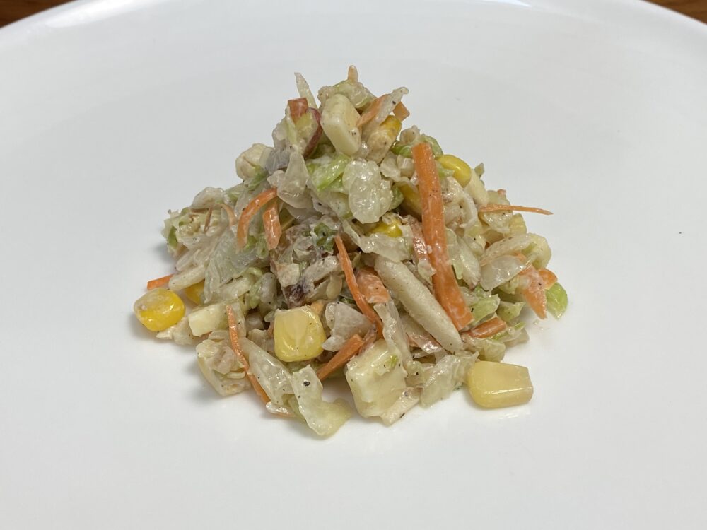 リンゴ、キャベツ、コーン、ゆで卵、ショウガ